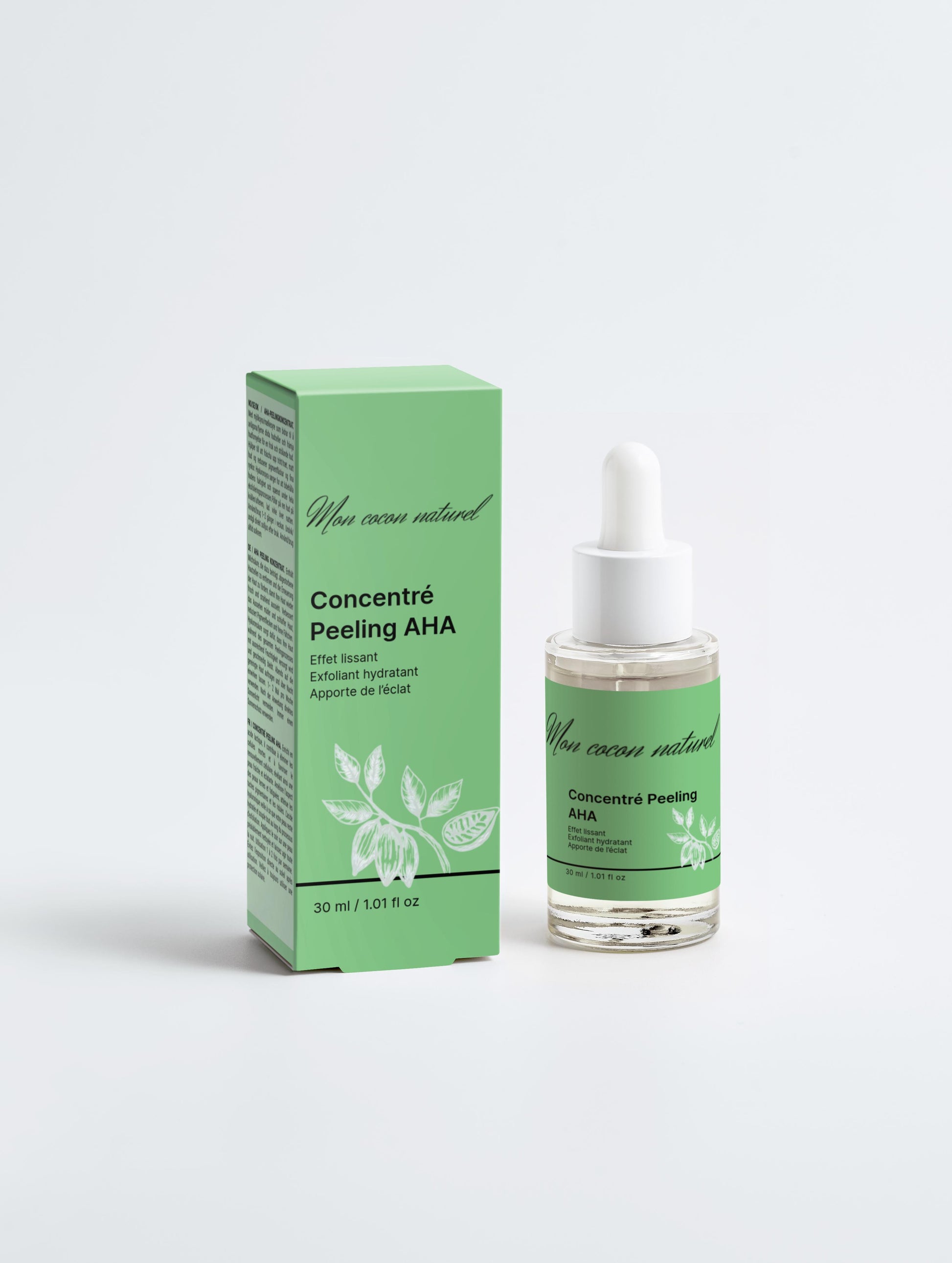 Découvrez le Concentré Peeling AHA enrichi en acide lactique, un soin exfoliant intense qui élimine les cellules mortes et stimule le renouvellement cellulaire pour révéler une peau fraîche, éclatante et visiblement plus lisse. Sa formule innovante cible les peaux ternes et fatiguées, atténue les taches pigmentaires et lisse les ridules pour un teint unifié et lumineux.