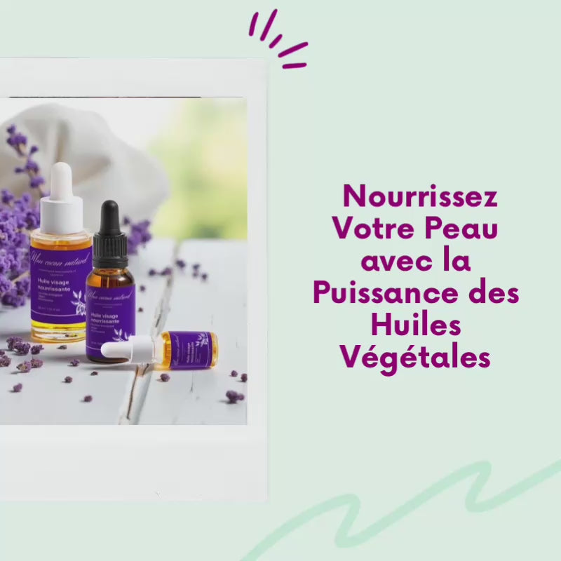 L'huile visage nourrissante proposée par Mon cocon naturel est fabriquée avec des ingrédients naturels de haute qualité, souvent certifiés selon les normes ECOCERT/COSMOS, garantissant un soin respectueux de la peau et de l'environnement.